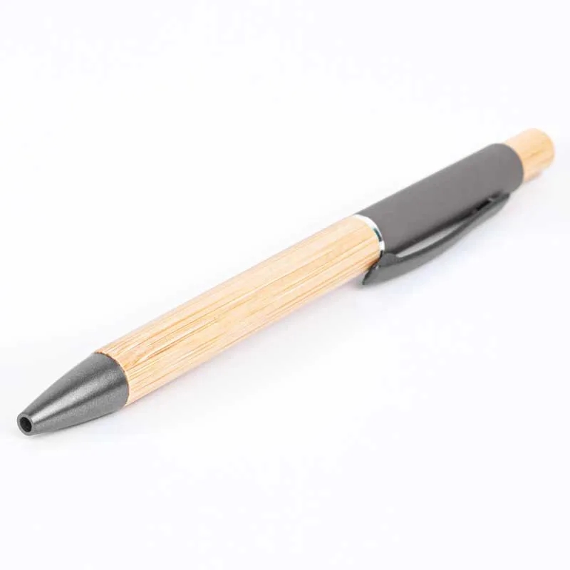 Additional InformationPlunger action ballpoint pen with black ink, gunmetal clip and tip and a bamboo plunger and barrel.