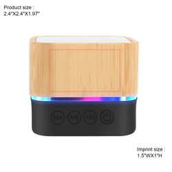 This compact and stylish wireless speaker, crafted from eco-friendly bamboo, combines natural aesthetics with modern functionality in a sleek cube-shaped design. Lightweight and portable, it's perfect for music lovers on the go. Featuring V5.0 technology, it provides a stable and seamless connection, ensuring uninterrupted playback whether you're indoors or outdoors. Powered by a built-in 500mAh battery, it delivers up to 4 hours of music at 50% volume on a single charge, with its 3W speaker offering crisp and clear sound for an enjoyable listening experience. The inclusion of a Type-C charging port, instead of the traditional Micro USB, enhances convenience with faster and more efficient charging, and a charging cable is included in the package for added ease. Passed UL tests. Complies with FCC, UN38.3.