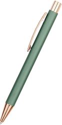 Highlights: Metal pen with rose gold accents on the plunger, clip and tip